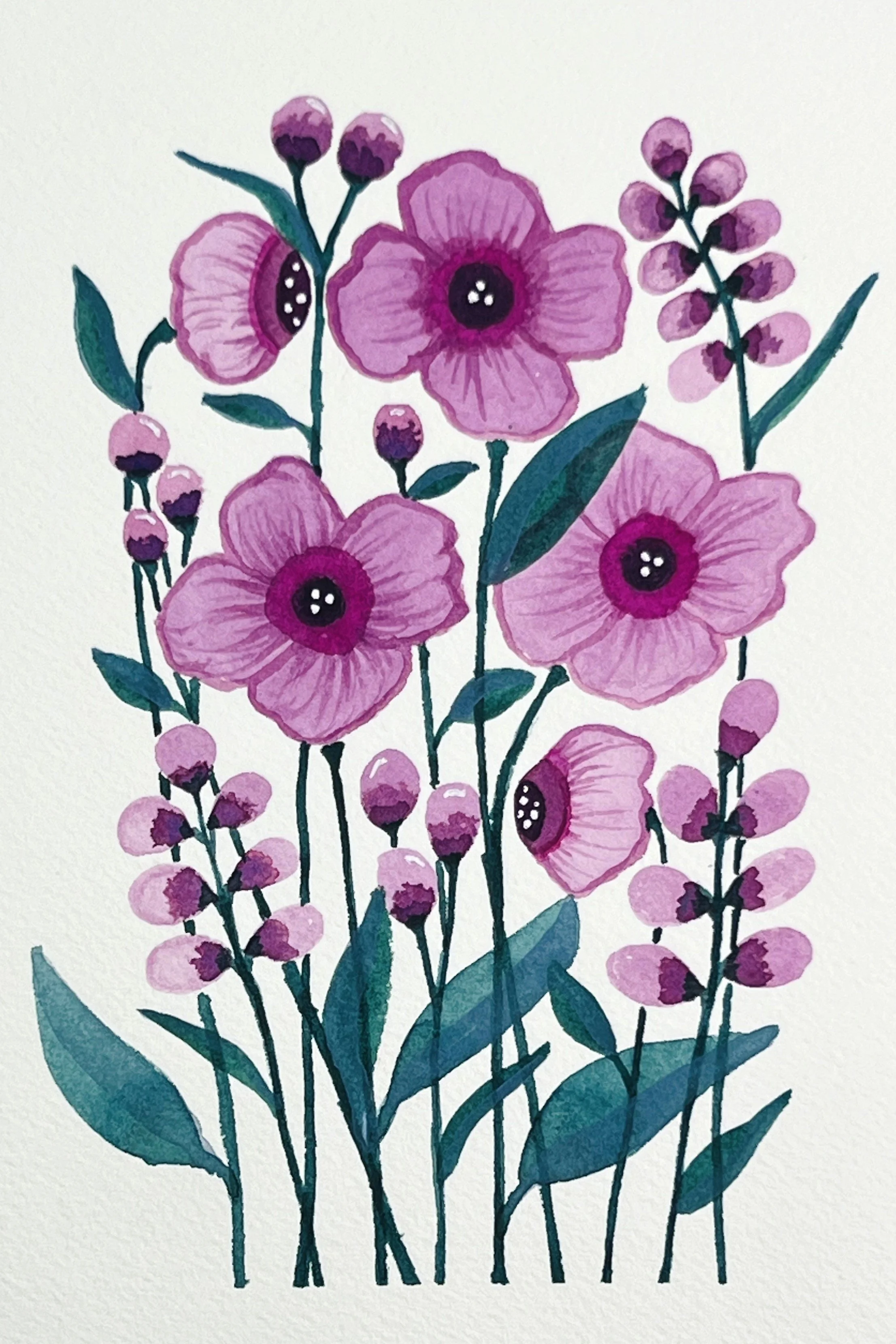 My painting journey started with acrylics on canvas, paper, and repurposed boards. I then shifted to mixed media art which included acrylic painting with paper collage, texture mediums through stencils, paint markers, stamped images, and ink. My primary focus since 2018 has been watercolor, which I just adore.